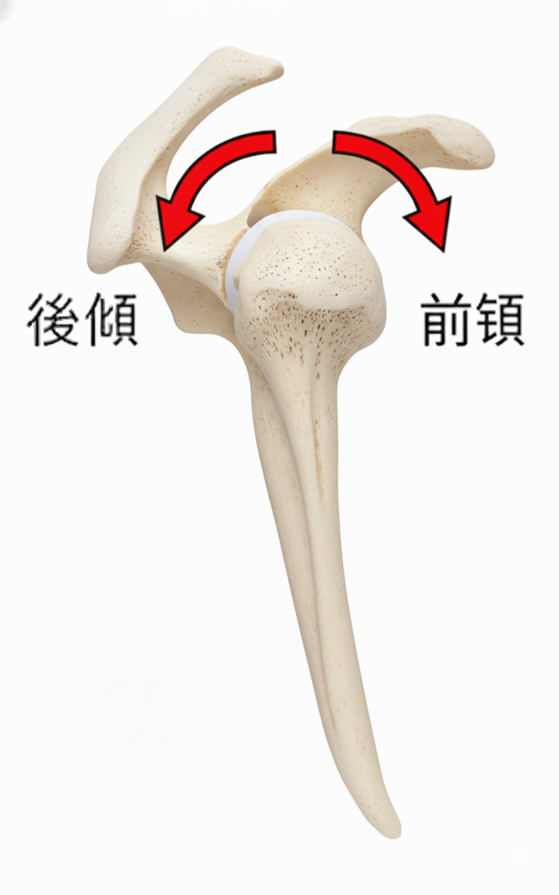 5.インナーマッスルの機能不全: この状態では、肩を支える「僧帽筋下部」などの重要な筋肉が引き伸ばされて弱くなり、肩甲骨が本来行うべき「後傾」や「上方回旋」ができなくなります 。