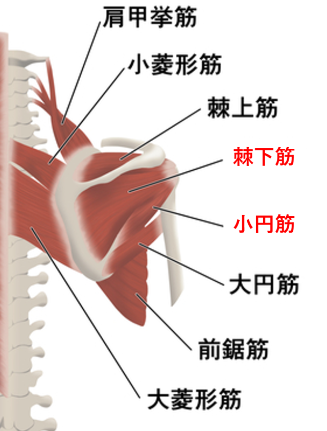 - 棘下筋・小円筋の腱板障害(投球の減速局面で痛みやすい)