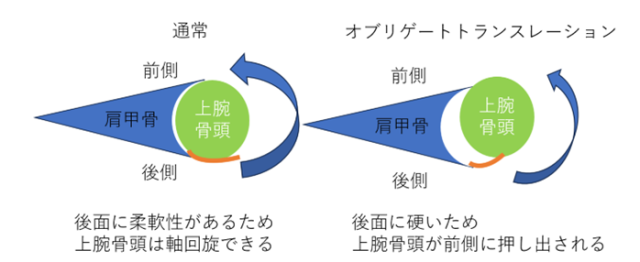 その際、後方組織が硬いと、上腕骨頭が前方に押し出されやすくなります。