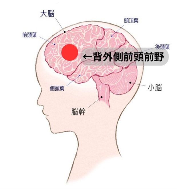 背外側前頭前野(DLPFC)は、脳の一部でこめかみより少し上にある領域を指します。
